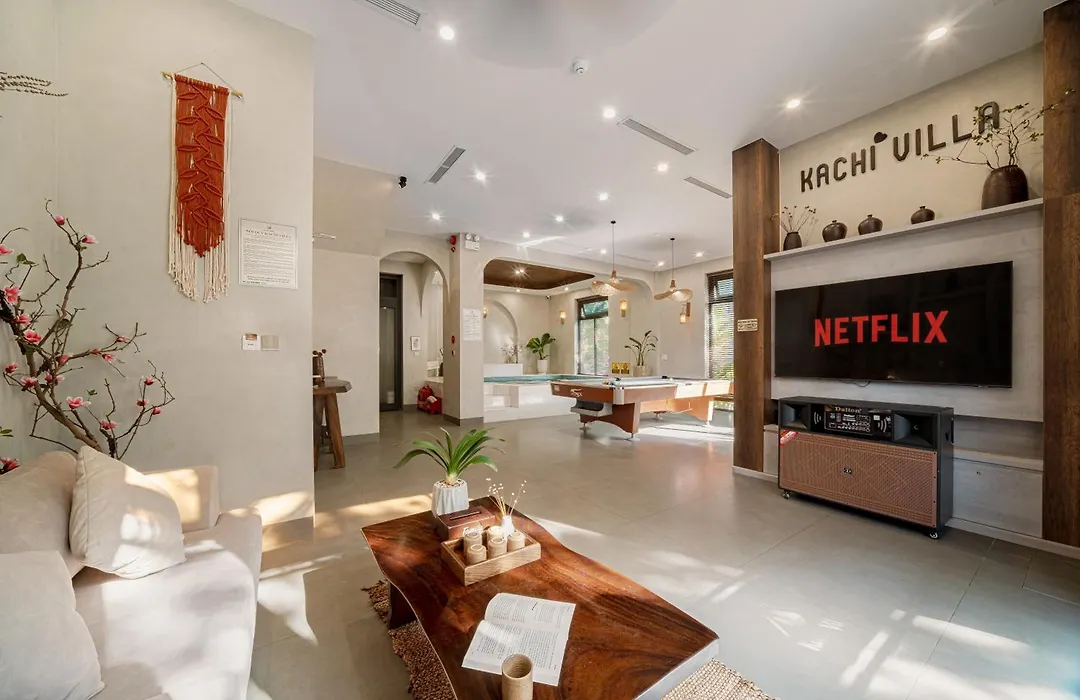 Kachi Blissvilla - Near Beach 9Br Ha Long, un appartamento sul lungomare, comprende una terrazza e si trova a una distanza di 3 km da Beach Fire. Gli ospiti sono attratti da un bagno turco, una sala per trattamenti benessere e una vasca idromassaggio nell'appartamento, che offre anche un body scrub, pedicure e la manicure per un maggiore relax.